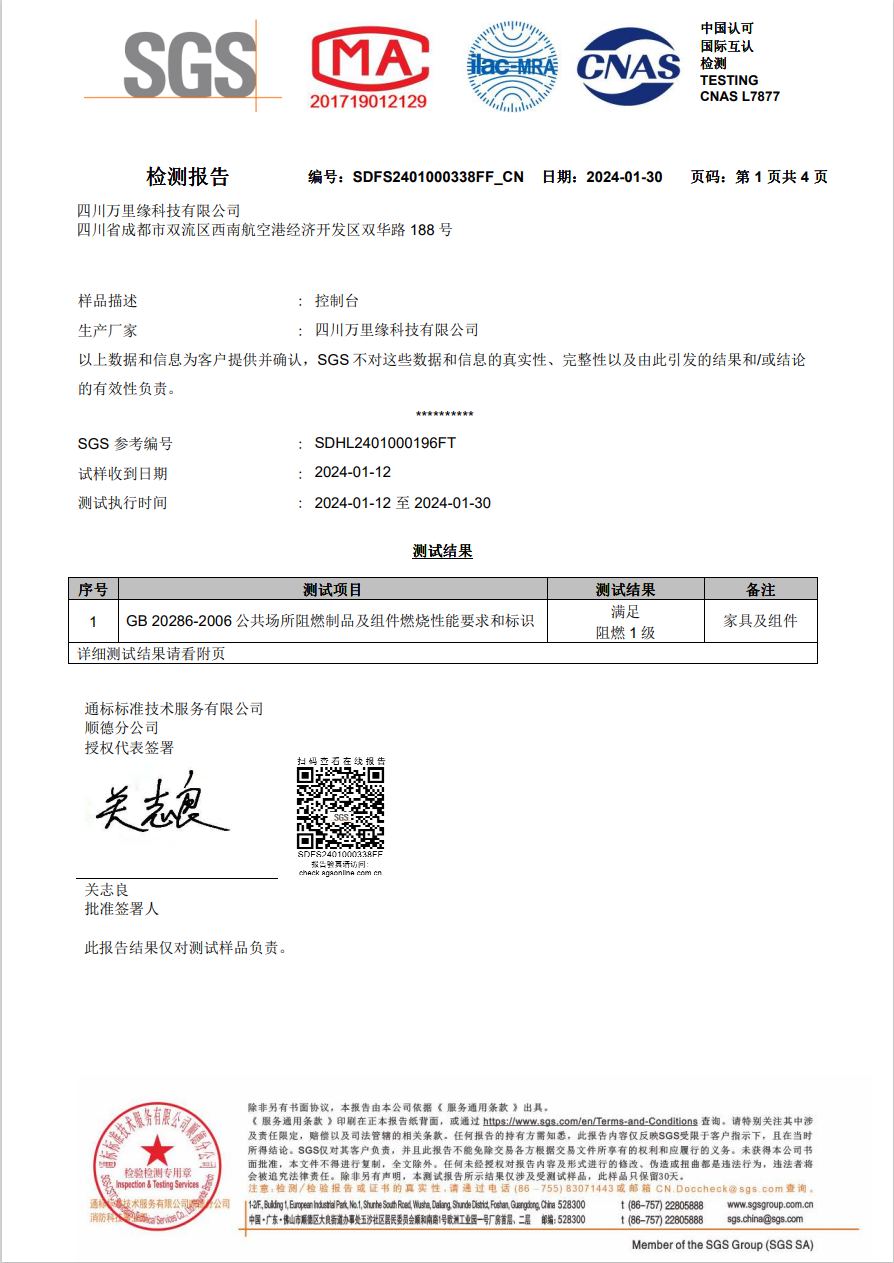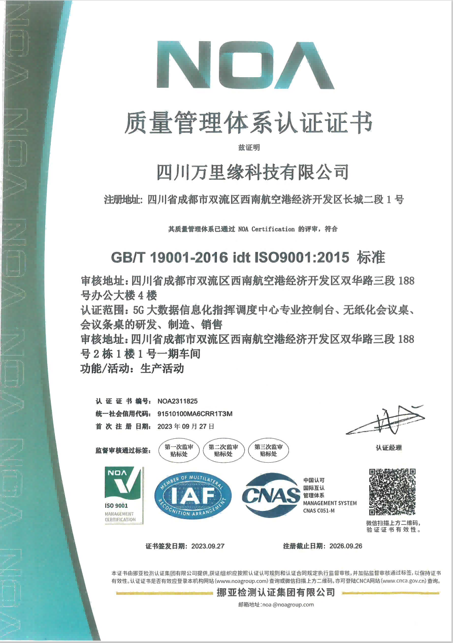 万里缘控制台产品和解决方案获得了业内权威的专业认可,万里缘科技有限公司也通过了企业3A认证,通过了ISO9001,ISO14001,ISO45001,SGS,BIFMA等多项认证。获得很多项国家专利,所支持的项目获得使用方的褒赞及表扬信。